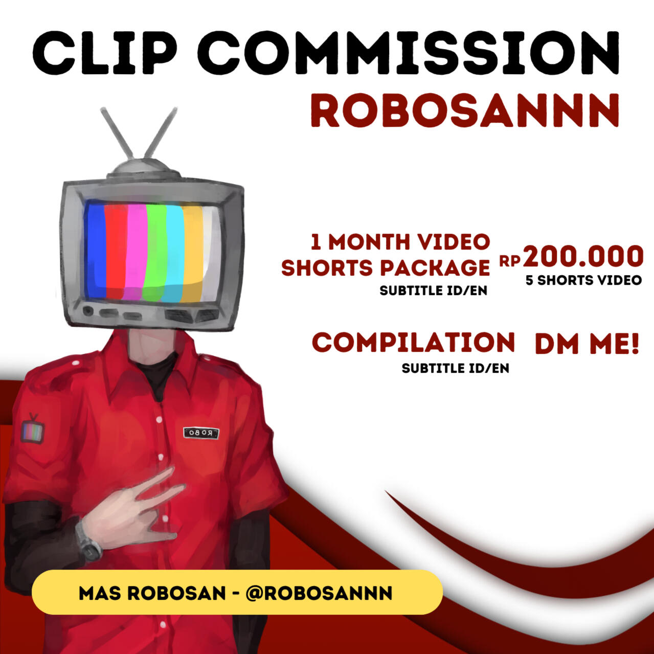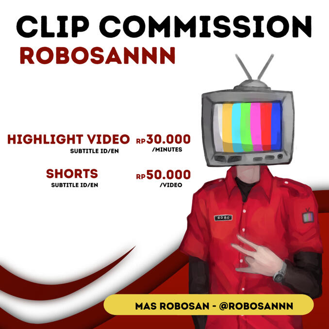 Hello, My name is Robosannn you can call me Robo. I am a clipper or video editor from Indonesia. I've been actively clipping vtuber from 2019. Currently I'm opening commission for editing clip or video.